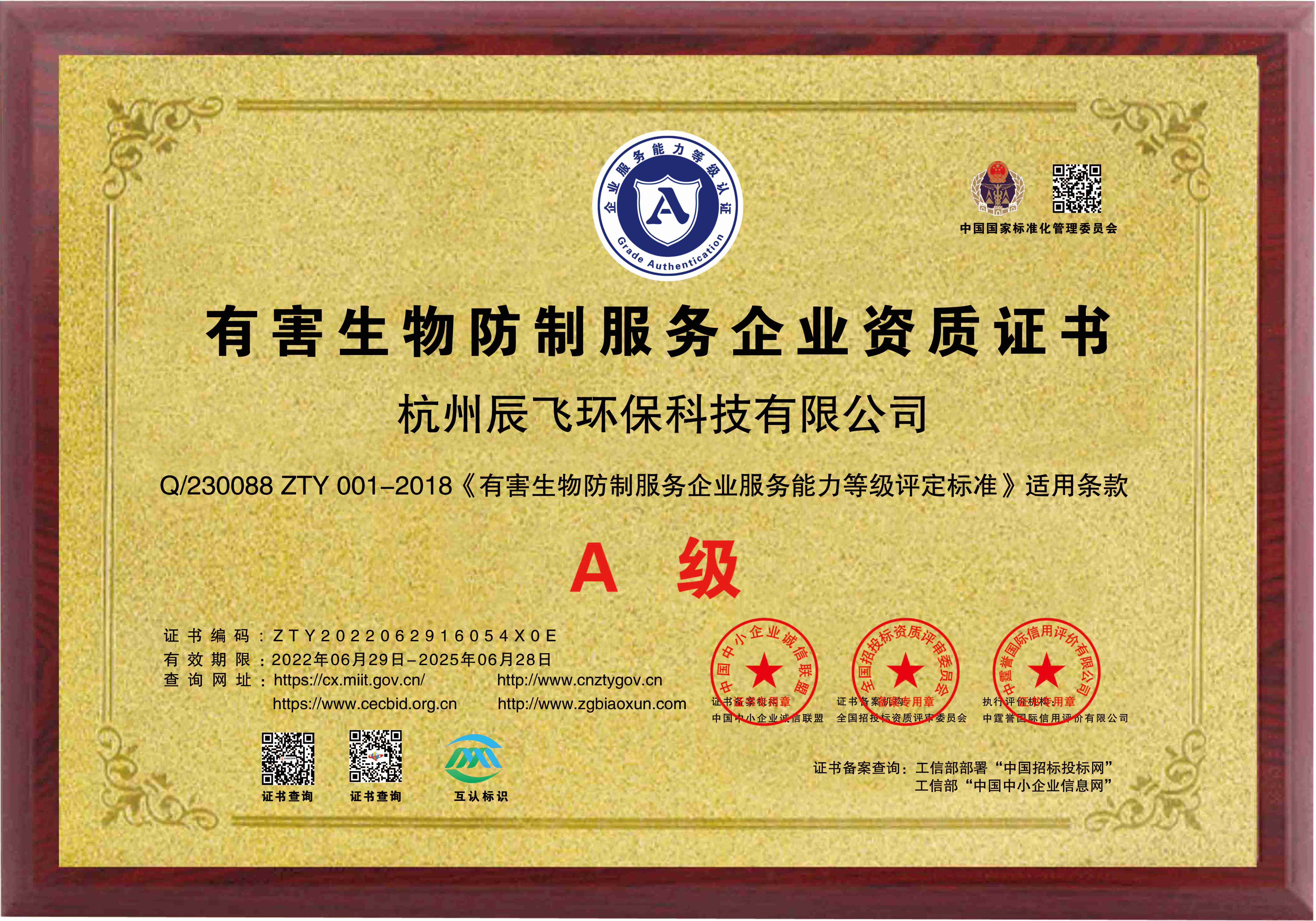 • 有害生物防制資質A級(2025-2028)